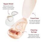 - Soft-touch silicone nipple shield made of 100% food-grade silicone, BPA free
